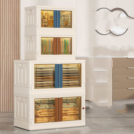 Stackable Beige Storage Box with Transparent Front - Space-Saving Organizer