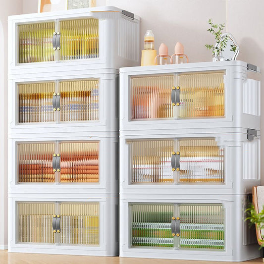 Stackable White Storage Cabinet with Transparent Doors
