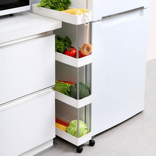 Space-Saving White Rolling Storage Cart with Durable Metal Frame