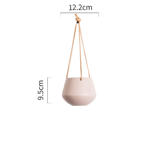 Eco-Friendly Ceramic Hanging Planter - White, Rounded Tapered Design