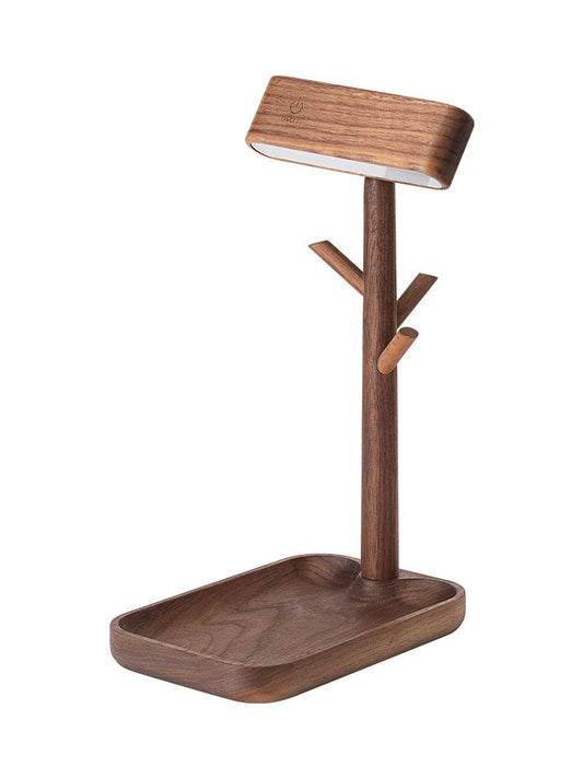 Eco-Friendly Desk Organizer with LED Lamp - Natural Wood