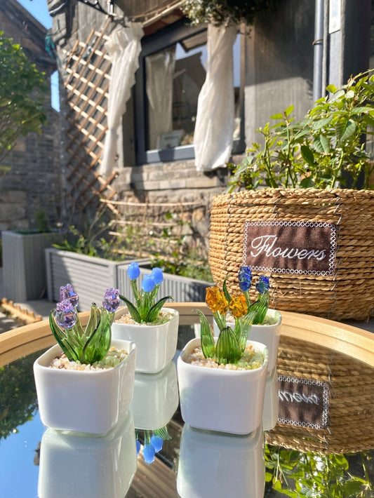 Eco-Friendly Glass Flower Arrangement in Ceramic Pots