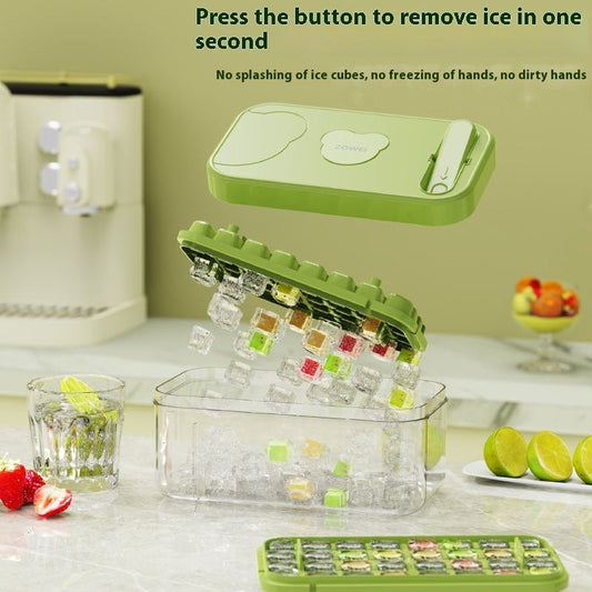 Eco-Friendly Ice Cube Tray and Storage Box Set - Green Lid, Reusable, Sustainable