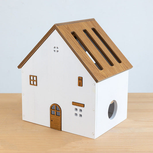 Eco-Friendly House-Shaped Tissue Box Cover with Natural Wood Accents
