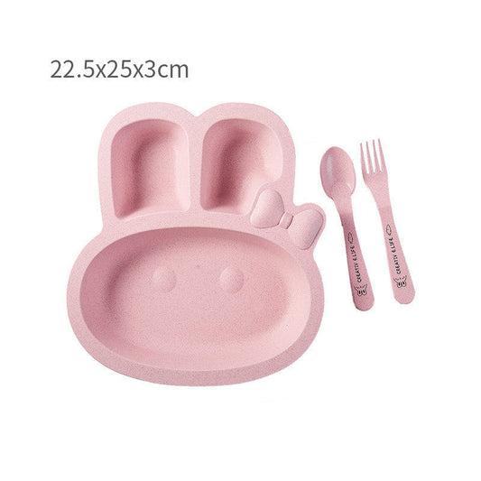 Eco-Friendly Pink Animal Divided Plate & Utensils for Kids
