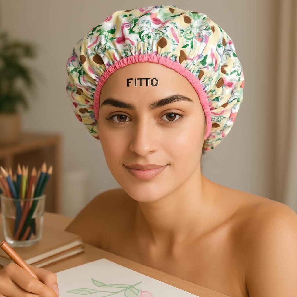 You get 12 waterproof shower caps in assorted colors and prints.