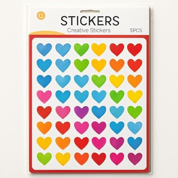 These are heart-shaped stickers in multiple bright colors.