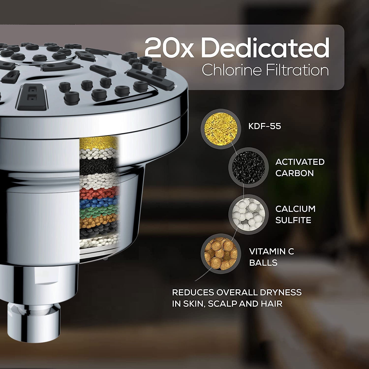 The replaceable filter cartridge reduces impurities, providing cleaner water for healthier skin and hair