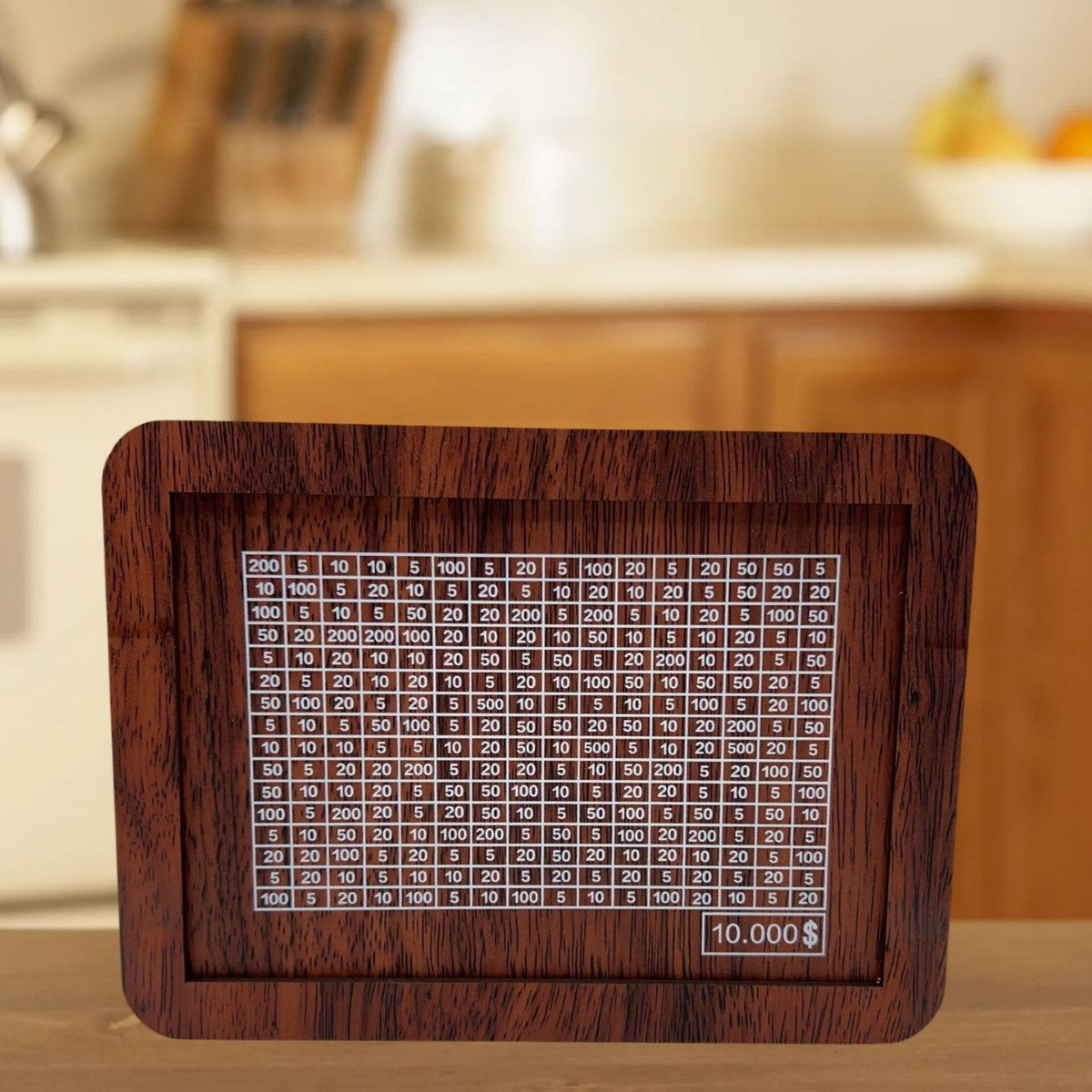 Crafted from durable, wood-like material, this piggy bank ensures long-term use and reliability